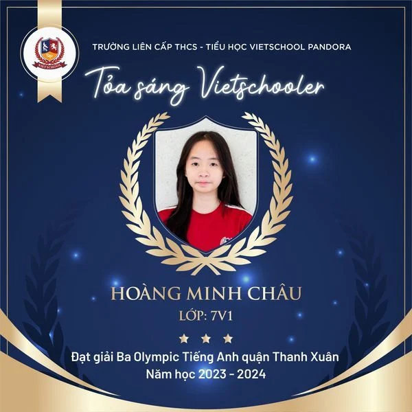 – Hoàng Minh Châu – Lớp 7V1 – Giải Ba môn Tiếng Anh