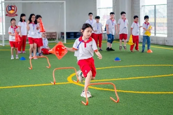– Vận động thông minh – Kết tình đội nhóm: Tại sân bóng đá, học sinh tham gia các trò chơi vận động thông minh cùng trái bóng, chóp nón, nấm thể thao, rào đa năng,… Những nhiệm vụ mà huấn luyện viên đưa ra yêu cầu các em phải phối hợp đội nhóm nhịp nhàng, sử dụng trí thông minh, sự nhanh nhẹn thì mới có thể “phá đảo” các trò chơi.